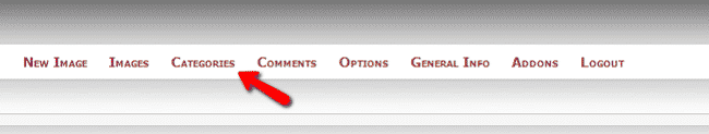 PixelPost gives you the option to create different categories for your posts. In this tutorial we are going to show you how to add, edit and delete categories. The first thing you will need to do is login to the admin area of your website. Then navigate to the “Categories” tab: