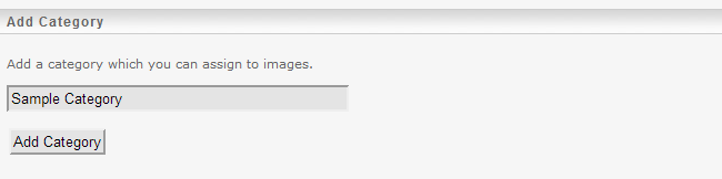 To add a new category, under “Add Category” section simply enter the name of the category which you wish to create and click the “Add Category” button: