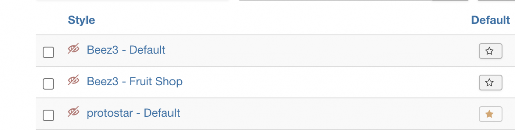 In our case, the default template was “protostar”. To select your newly installed template to be the default one, simply click on the star symbol next to the template. These are all of the steps for installing and enabling a Joomla 3 template.