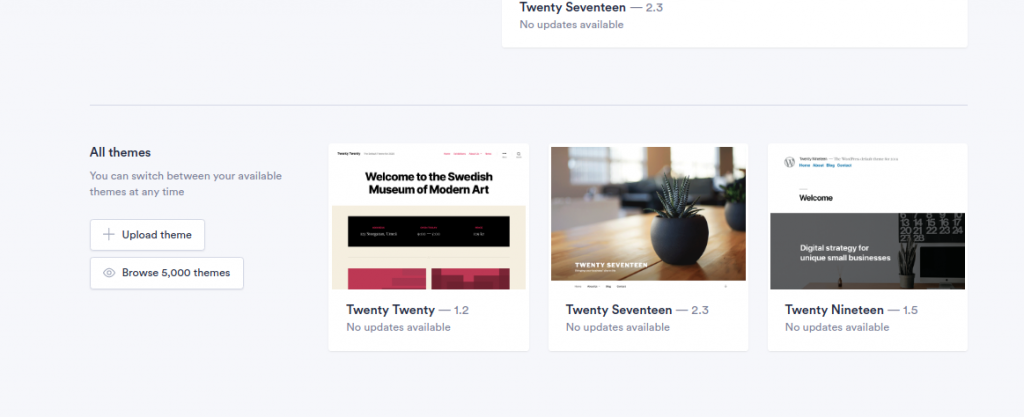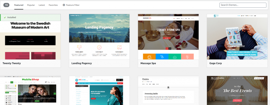 – Search installed themes: from this tab you can search for the themes already installed on your website