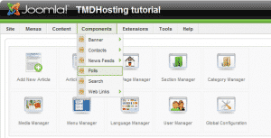 Now to find out what are visitor’s opinions toward our new site, we will place a poll. To do this, we choose Components -> Polls from the top menu: