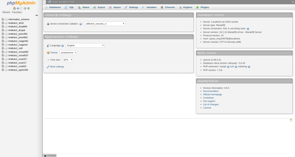 The databases which are present on your cPanel account will be shown on the left side of the page. If you have more than one web application installed you will have more than one database. To select the correct database of your Moodle application you should review with which database your Moodle application is configured. This process is easy and straightforward.