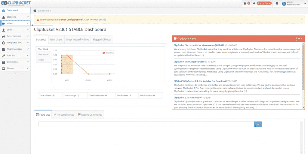 ClipBucket is indeed one of the best performing video sharing online platforms. In order to begin the process of setting up your own website, one of the first things you will need to do is to create new categories for the videos you and your visitors are about to upload. Here, we are going to quickly outline how you can do that yourself.