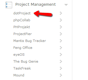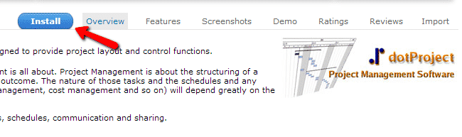 You will be redirected to the overview page for dotProject. Click on the “Install” tab: