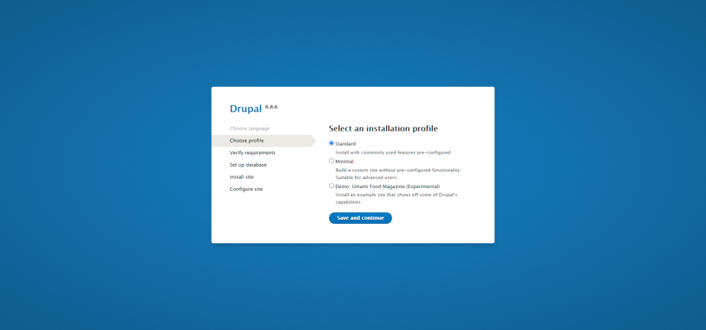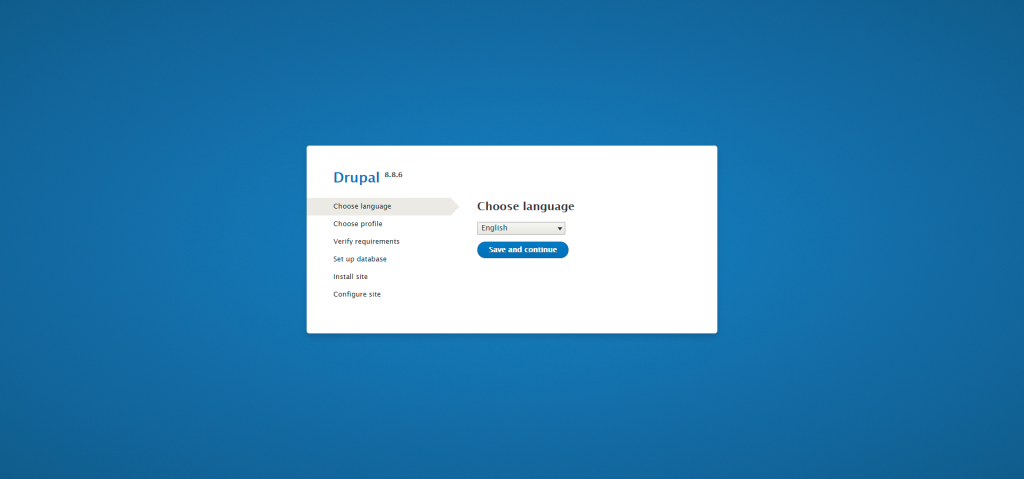Once done with the database creation and all of the Drupal files are placed in the designated directory, we may proceed with the installation. In order to do this, we would need to navigate to the exact URL of the domain, which document root you have used to place the application’s files inside.