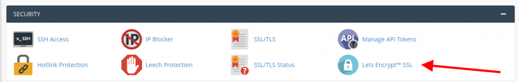 To Install the Let’s Encrypt SSL certificate for your domain access your cPanel account and navigate to the Let’s Encrypt SSL tool: