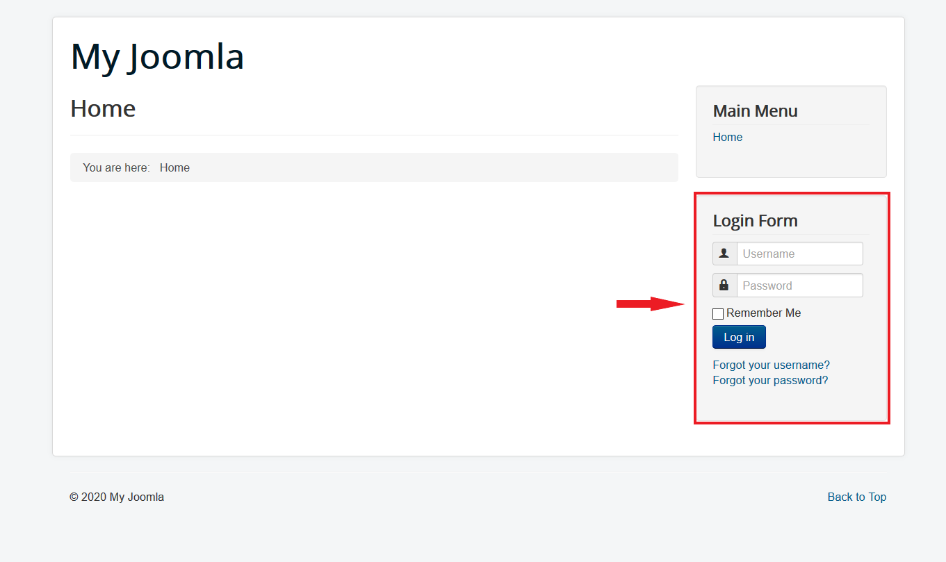 Note that with your administrator login details (Username and Password), you may log in to both the website’s front end and your Joomla’s dashboard.