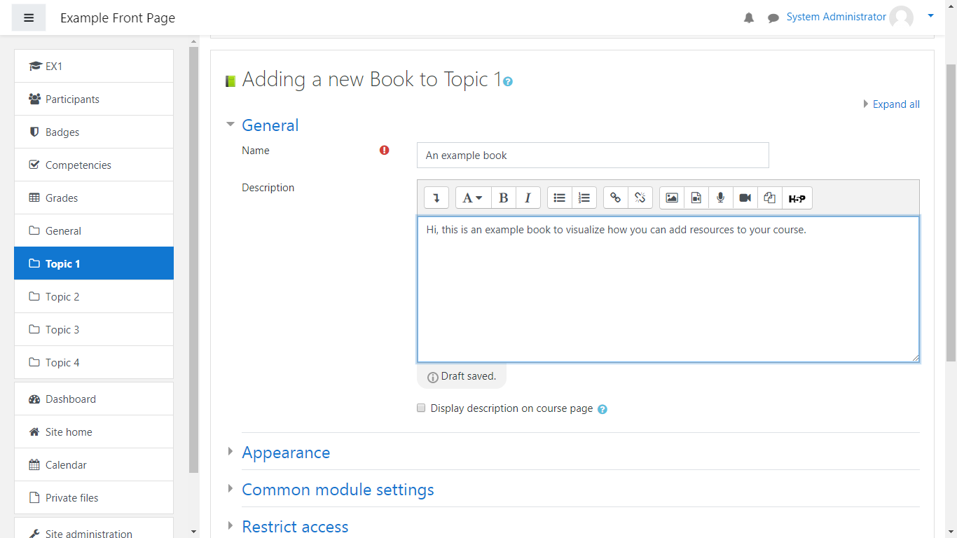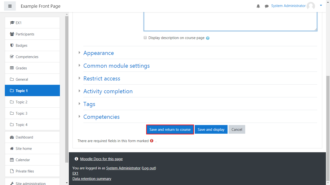 Fill in the necessary fields and once you’re ready, click on Save and return to course:
