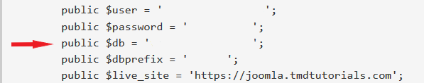 In this folder locate and open to view the “configuration.php” file.