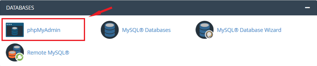 Now that you know the name of the database, go back to the home page of your cPanel and open the “phpMyAdmin” tool.