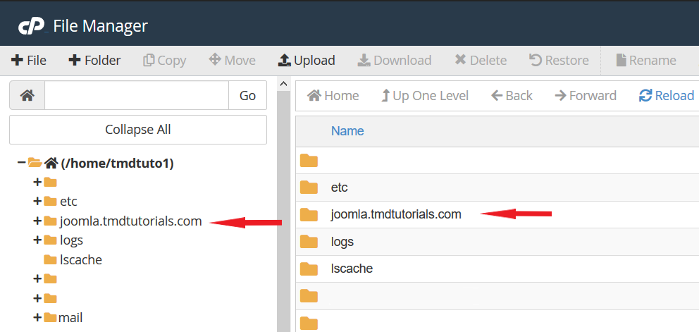 Once in the “File Manager” find and open the directory for your website. If you have Joomla installed for your primary domain its files will be located in the “public_html” folder. In case Joomla has been installed on a subdomain or an addon domain, in most cases their folders are named after them.