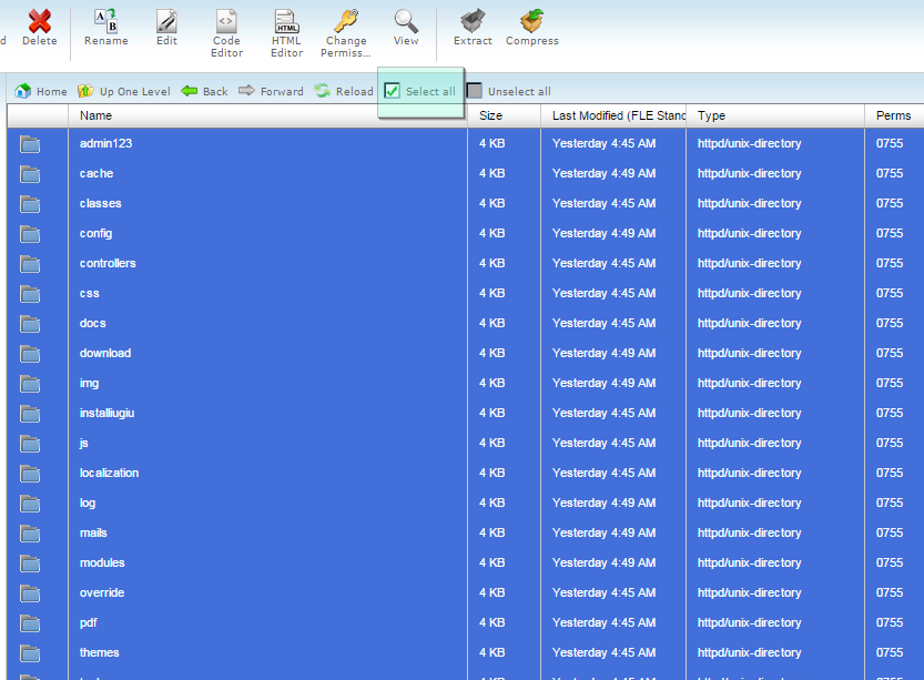 - Access cPanel and refer to File Manager, then find the directory which hosts the files of your Prestashop website.