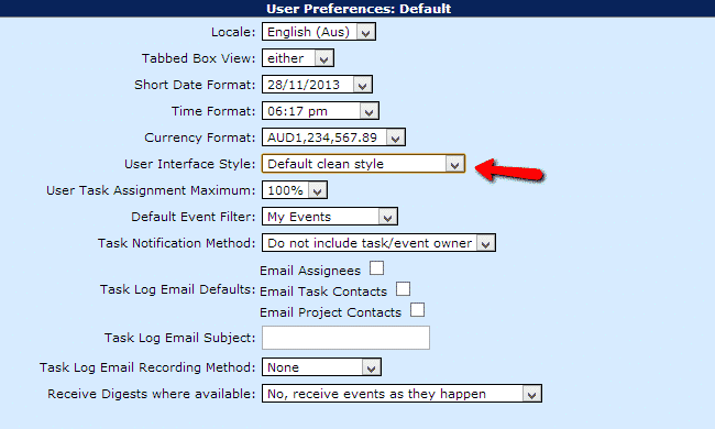 On the next page select the “User Interface Style” from the dropdown menu:
