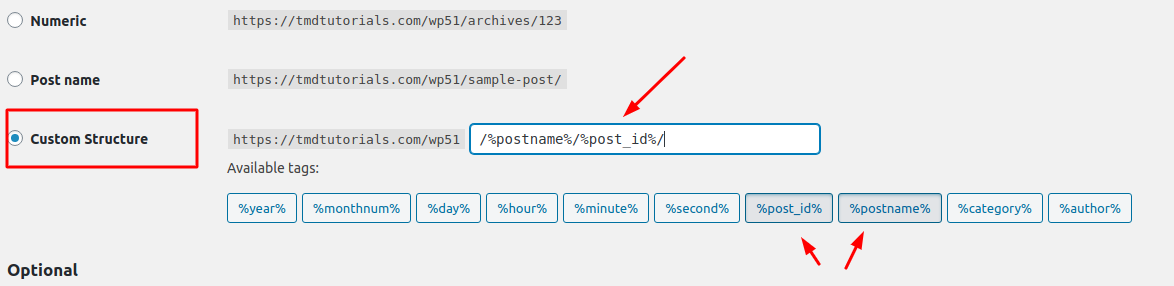 - Numeric: this type ads at the slug the ID of the post https://yourdomain.com/archieves/145