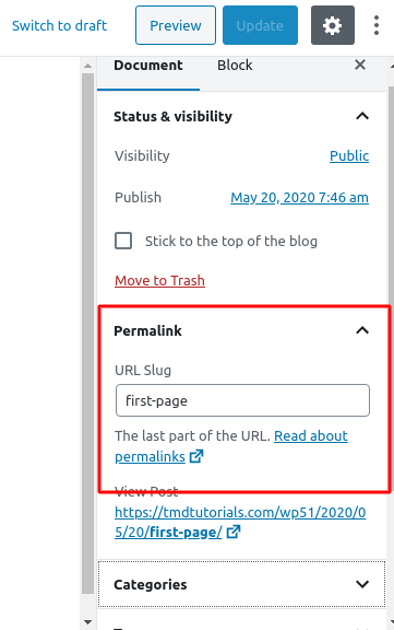 - Month and name: Just as the above one it will display the month the article was created and its name, however, without the exact date https://yourdomain.com/2020/05/first-post