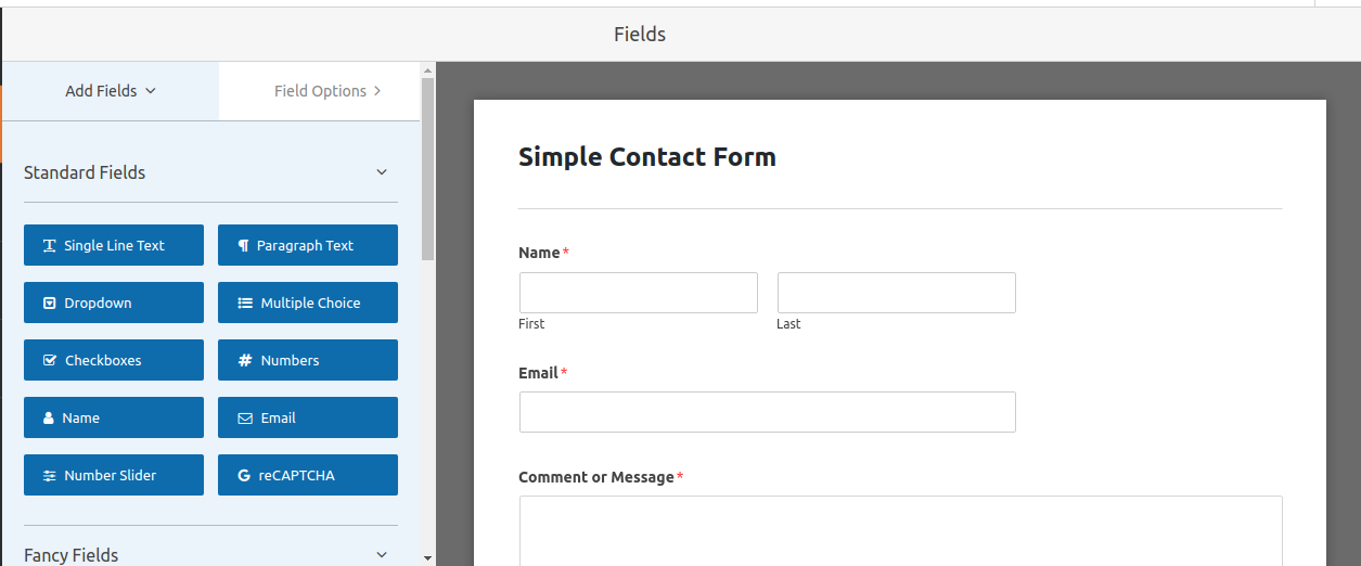 After that choose a type of form you want to build. The options are Blank Form, Simple Contact Form and Newsletter Contact Form.