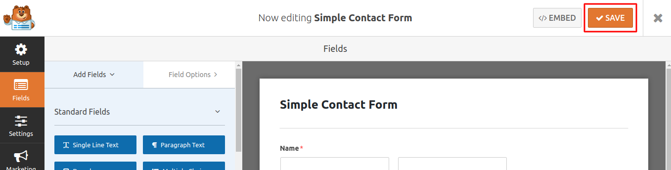 Once you are ready with the form you can click on the “Save” button