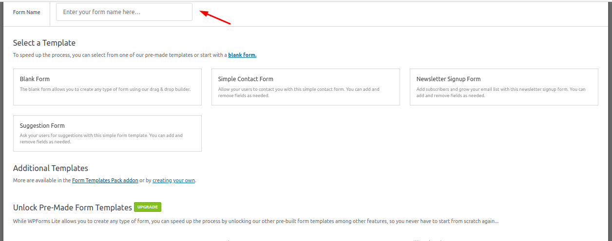 - WPForms offers and ready templates which are paid and you can review them if you access “Form templates Pac addon” under Additional Templates