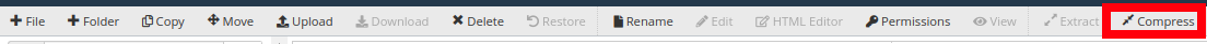 After accessing the File Manager tool select the root folder of your UNA website and use the “Compress” toll present in the top menu bar:
