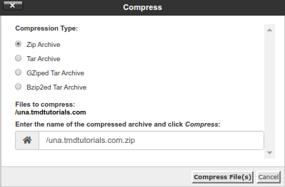 After choosing the type of archive and the name the file will be saved in the “/home” directory of your account which you can now download directly from the “File Manager”.