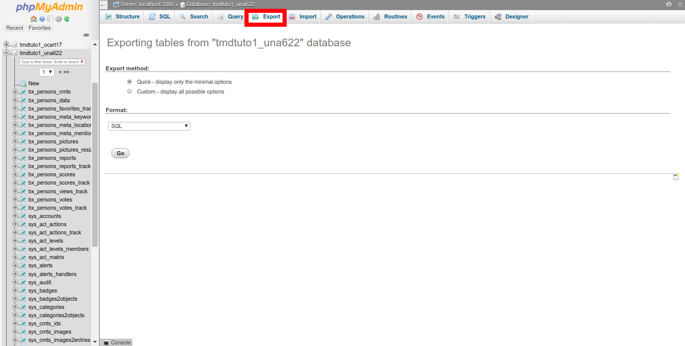Now to proceed click on the “Go” option as this will export the database “.sql” file format. You can download the file to a location on your device.