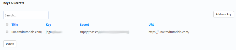 This way a “Key” and “Secret” codes will be generated that later need to be added in the configuration of the website.