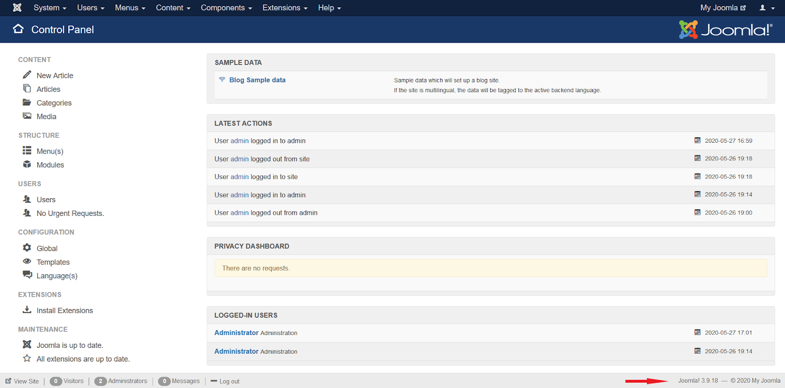 There are multiple ways to find out the version of your Joomla instance. The easiest way to find it would be through your Joomla’s dashboard.