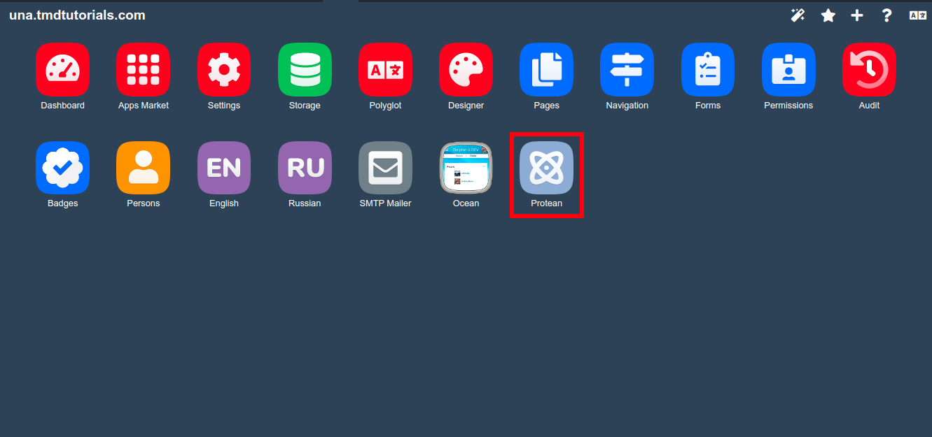 To activate the template and apply it to your UNA website you will have to access the “Designer”