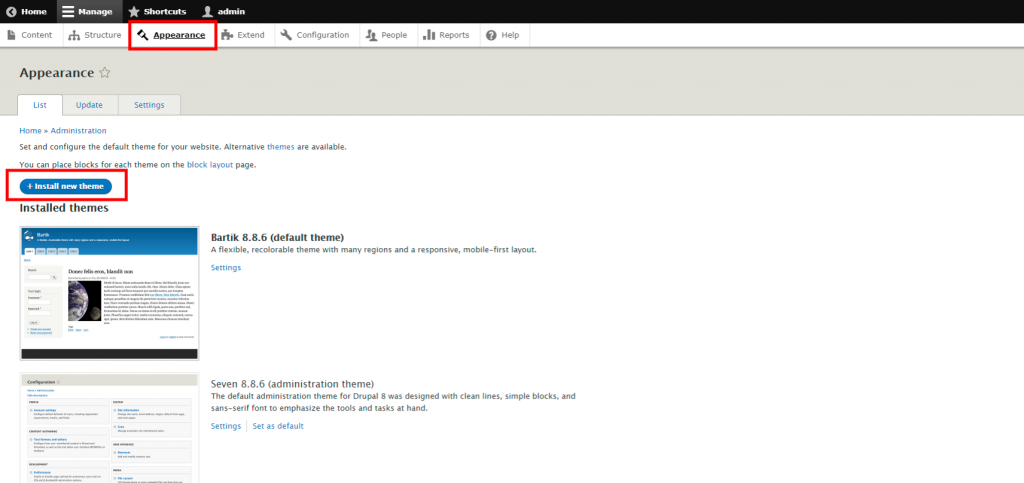 In the following article, we will discuss how to install and enable a theme inside your Drupal-based website.