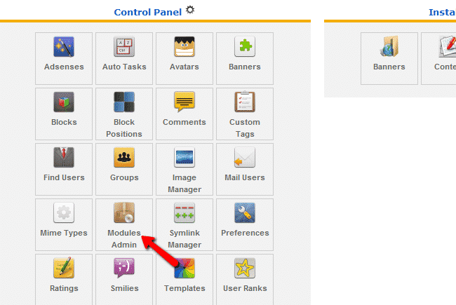In both cases make sure that the module files are placed in their own folder. Once you have placed the module folder, access the admin area of your website and select “Admin Modules”: