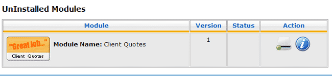 On the next page scroll down and under “Uninstalled Modules” find the module you have just uploaded: