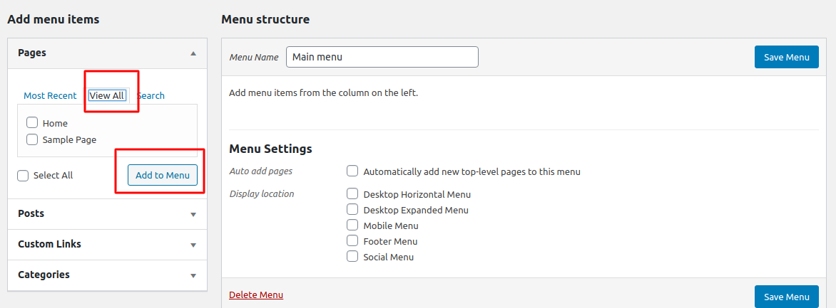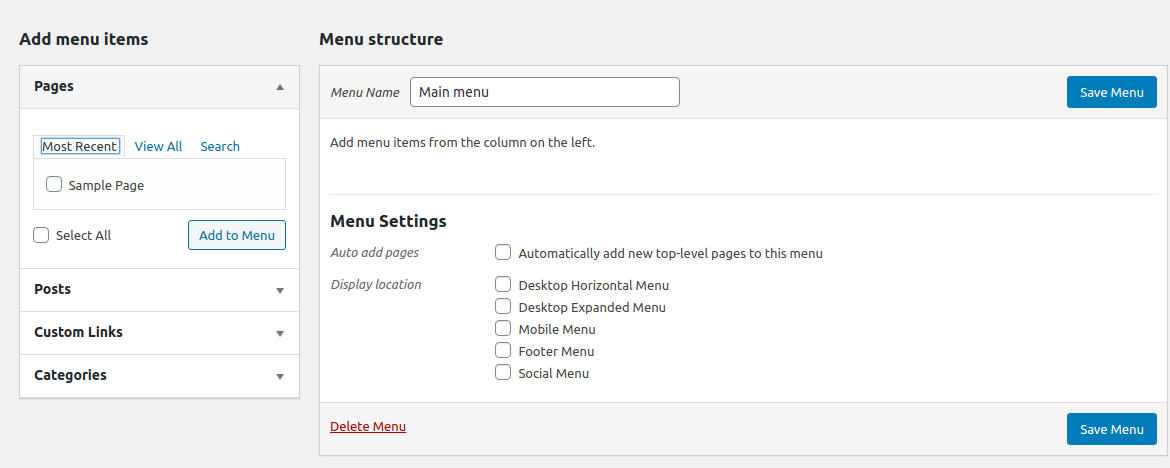 How to setup navigation menus in WordPress