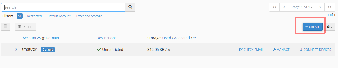 The first thing you should consider before proceeding with this task is the creating of an email account if you haven`t. Creating an email account can be done with a few steps. First, access your cPanel and go to the Email accounts tab where you will see the “Create New” button.