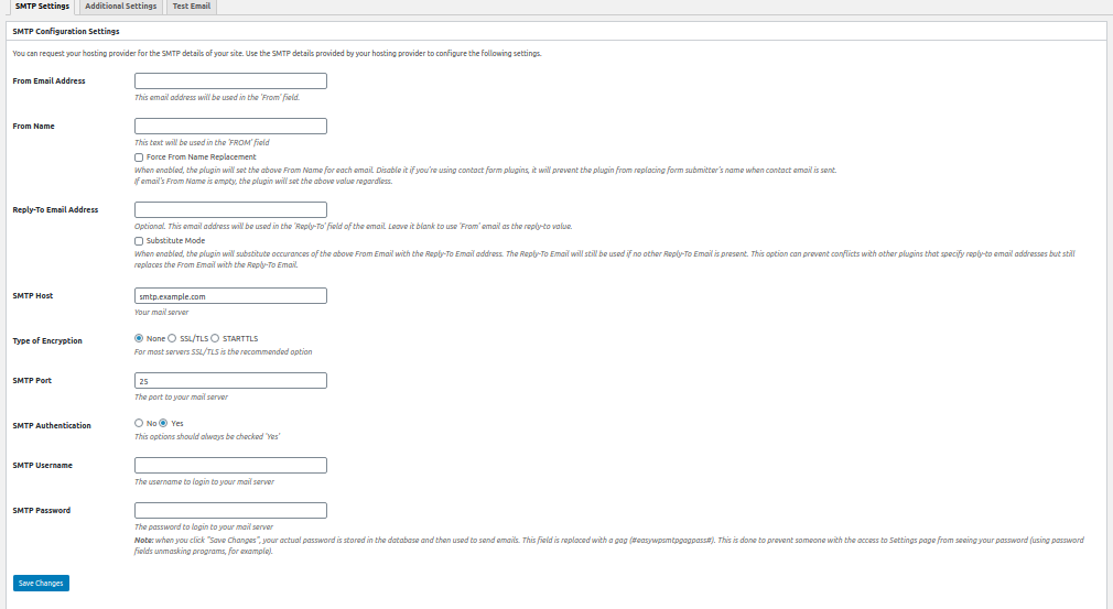 SMTP Authentication: Thi should always be set to “Yes”