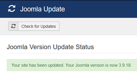 If the update is successful, you will see a message that informs you that you are now using the new version of Joomla.