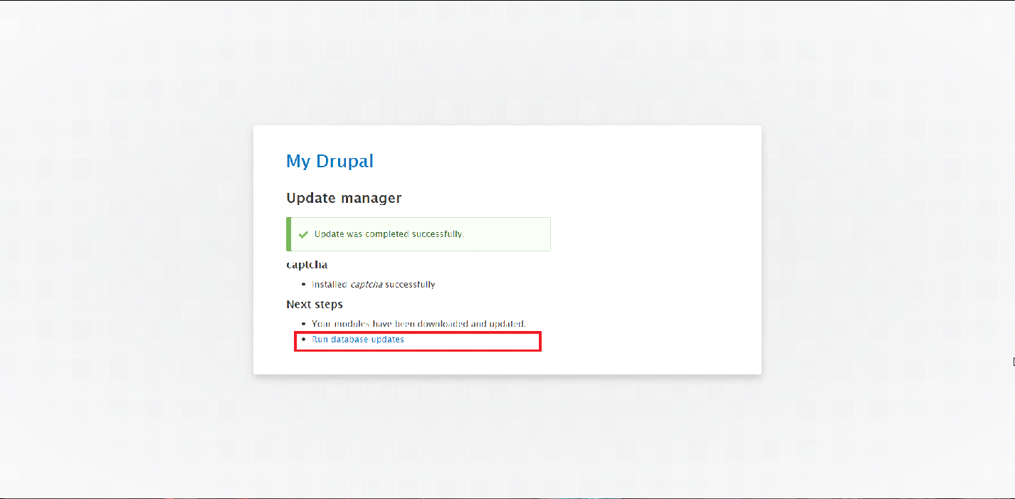 Once the process of updating the databases completes, the Modules will be successfully updated for your Drupal application.