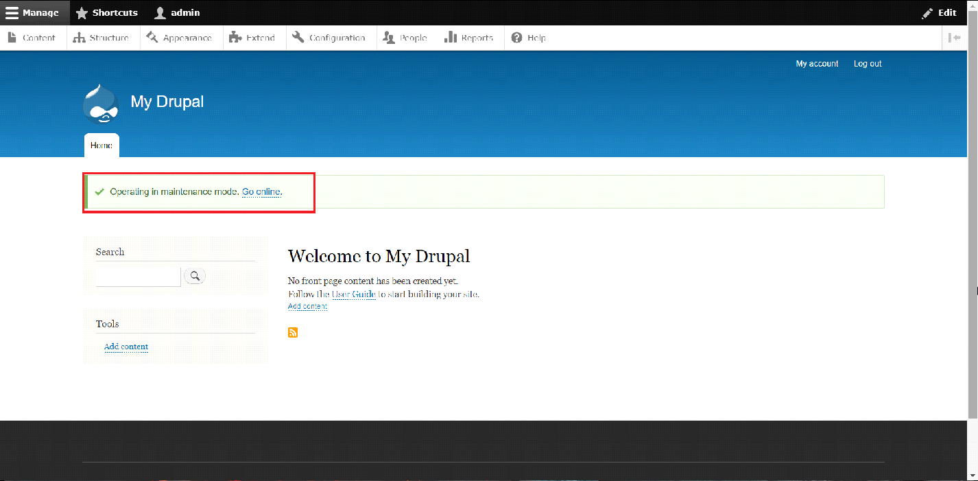 Simlpy click on the "Go online" link in order to proceed to the next step. You will now be redirected in the "Maintenance mode" section of the Administrative Panel.