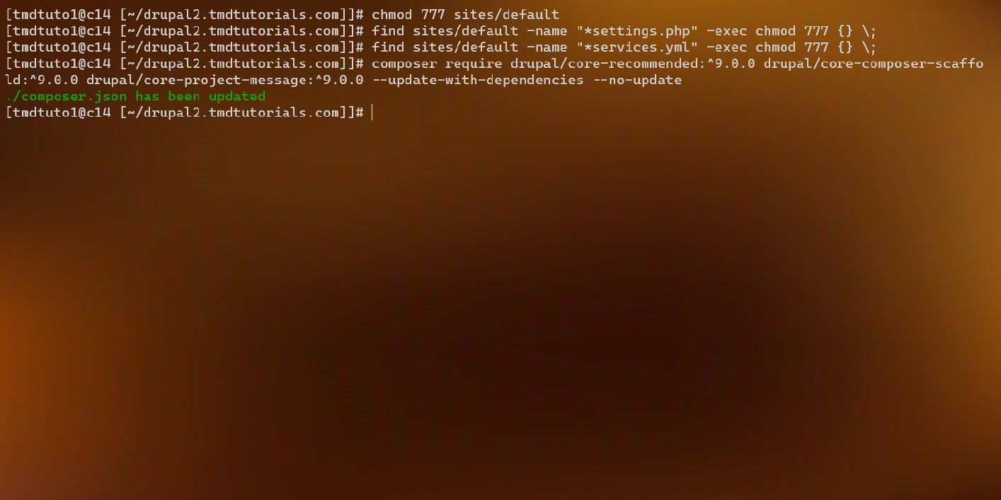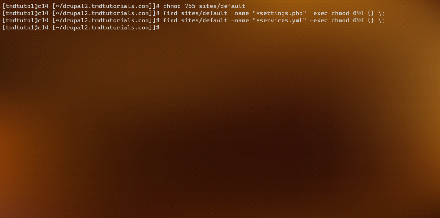 Now that you have successfully upgraded the Drupal application, you will have to restore the normal permissions of the configuration files by running the following commands: