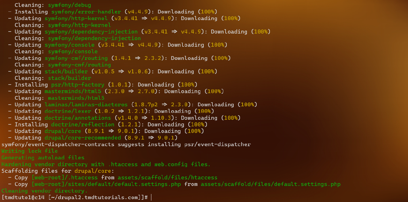 The next step is to download the packages of the new Drupal version which could be achieved by executing the following command: