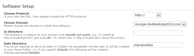 In Directory – type the folder name in which ImpressCMS should installed. Leave blank if you wish to access the site using https://yourdomain.com