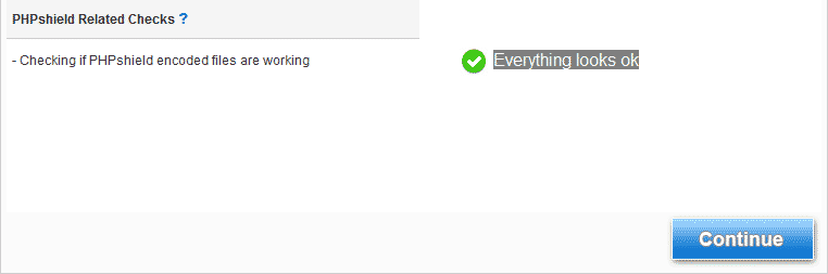 The next step is a check which will show if all the server requirements for the application to run are present. If you notice any message different than “Everything looks ok” you may contact our technical support by posting a ticket: