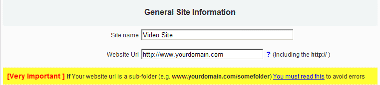 The second section we mentioned you should fill with the exact URL via which your phpMotion will be accessible. This you may take from your web browser address bar and remove the /setup/mysql.php from the address: