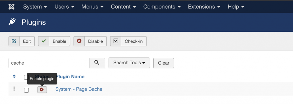 Now you need to check and enable the built-in Joomla Caching plugin, in order for the caching service to become active.