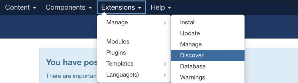 Finally, you may access Extension Manager -> Discover: