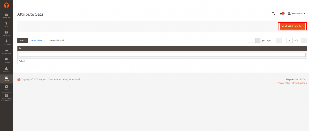 This will take you to a new Page, where you can create a new Attribute Set by clicking on the “Add Attribute Set” button on the top right corner of that page. The page will look something like this:
