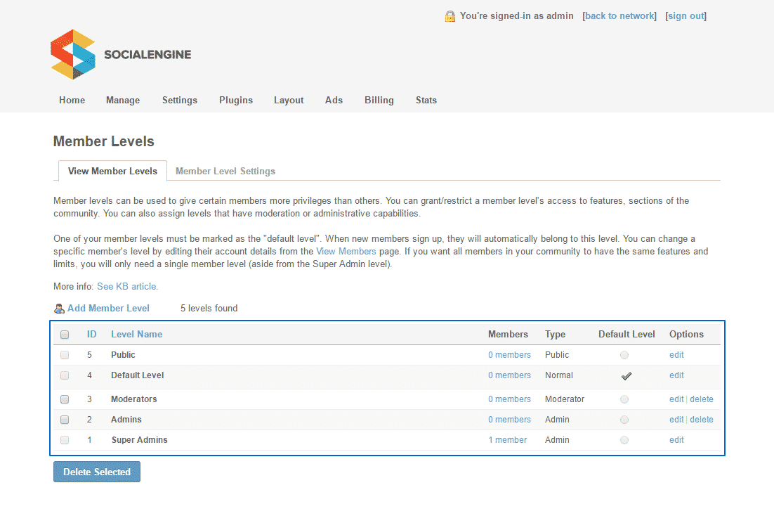 To manage these member levels you need to understand the basic member levels that the SocialEngine application offers.