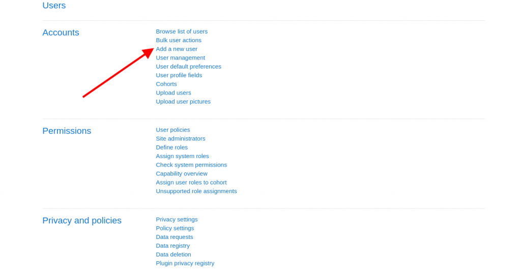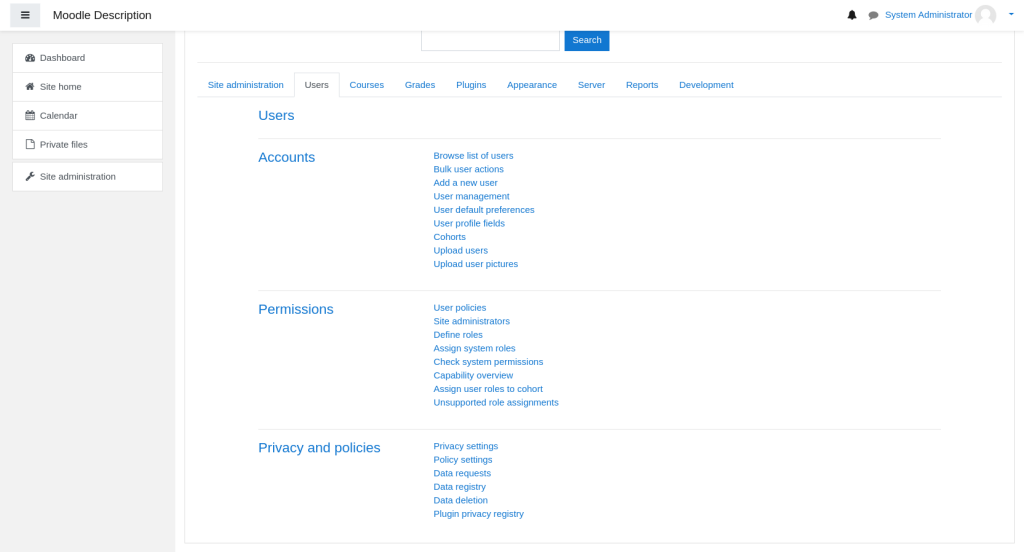 In the following guide we will provide you with more information regarding Managing the users in your Moodle application. Due to its user friendly interface this task is easy to perform. All of the tools which are needed to manage your application users are present in the Administrative Dashboard of the Moodle application.