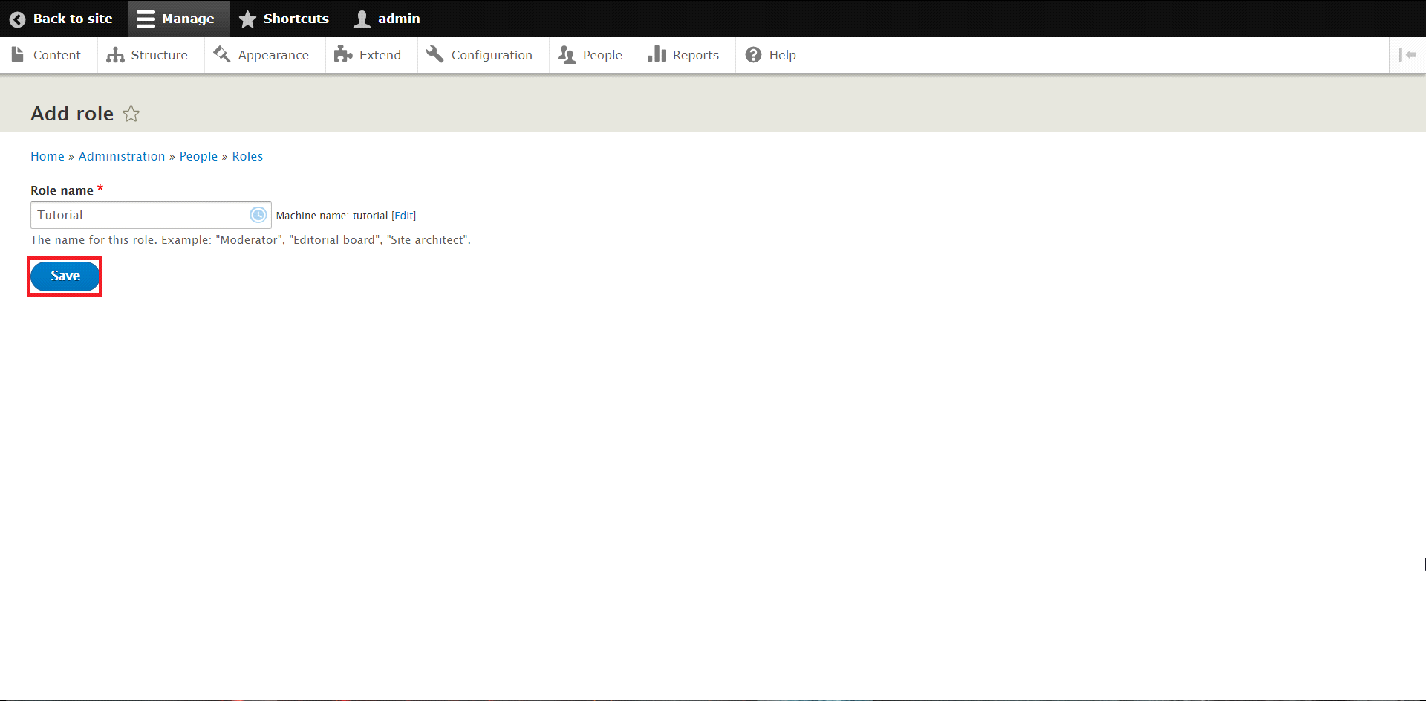 In the next page, you will be requested to enter a name for the new desired Role. Once you have entered the desired name, click "Save" in order to successfully create the Role.