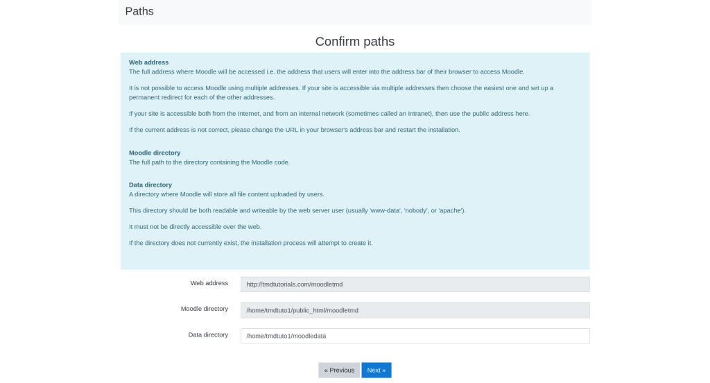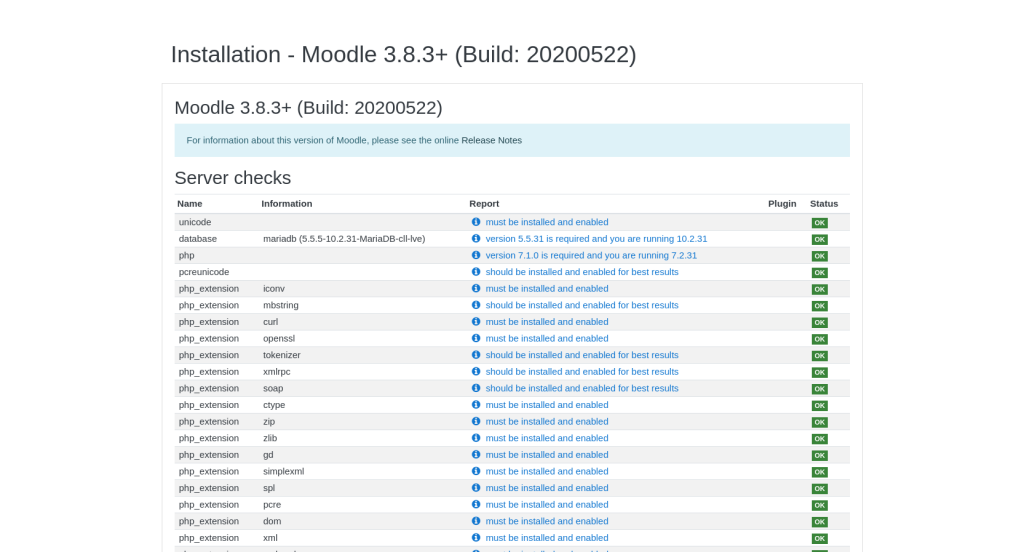 In the next section the Moodle application will review the server on which you are installing it if its meeting the server requirements of the Moodle application. We would like to assure you that all of the hosting packages at TMDHosting are fully compatible with the Moodle Software.