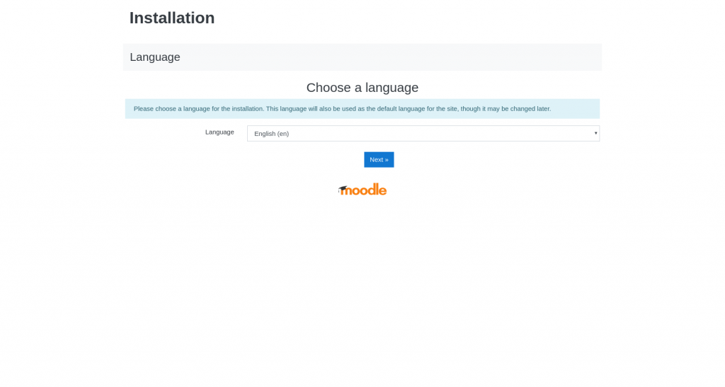 On the first step of the Moodle installation wizard you will be asked to choose the language which your Moodle application will use.